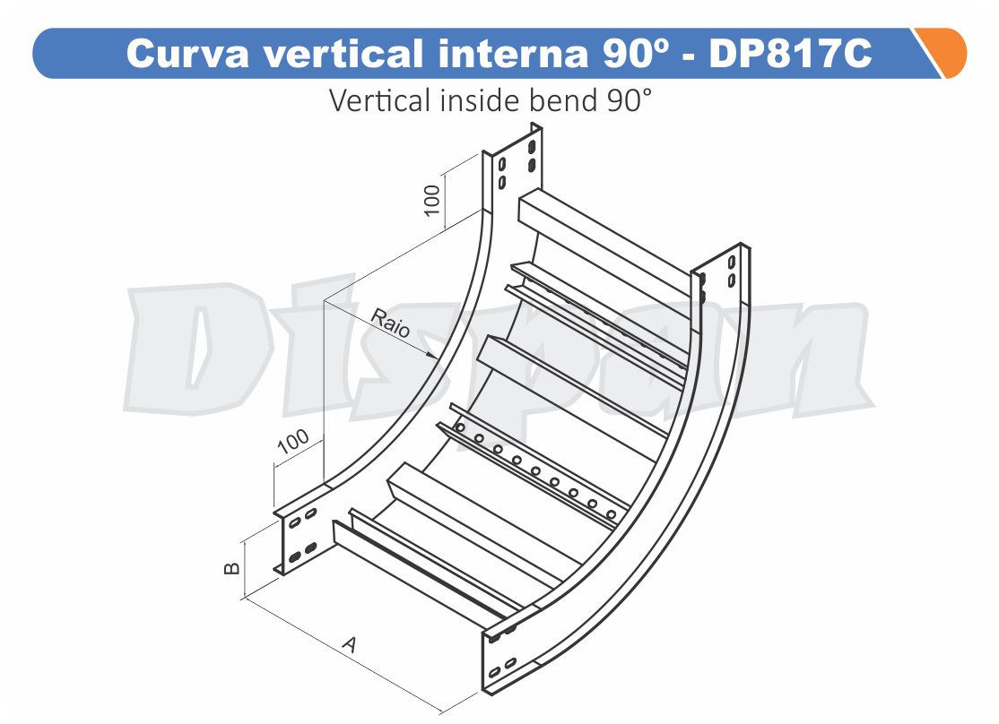 Curva Para Leito Vertical Interna Aço Carbono 90G Curvilineo 320 1000Mm Gf Aba Externa Alt 100Mm