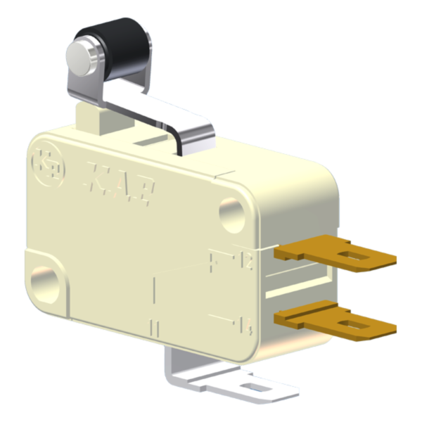 Microrutor Miniatura 15A, 1Na+1Nf, Alavanca Curta Com Rolete, Terminal Faston 4,8X0,5Mm MV71J1CA1 Kap